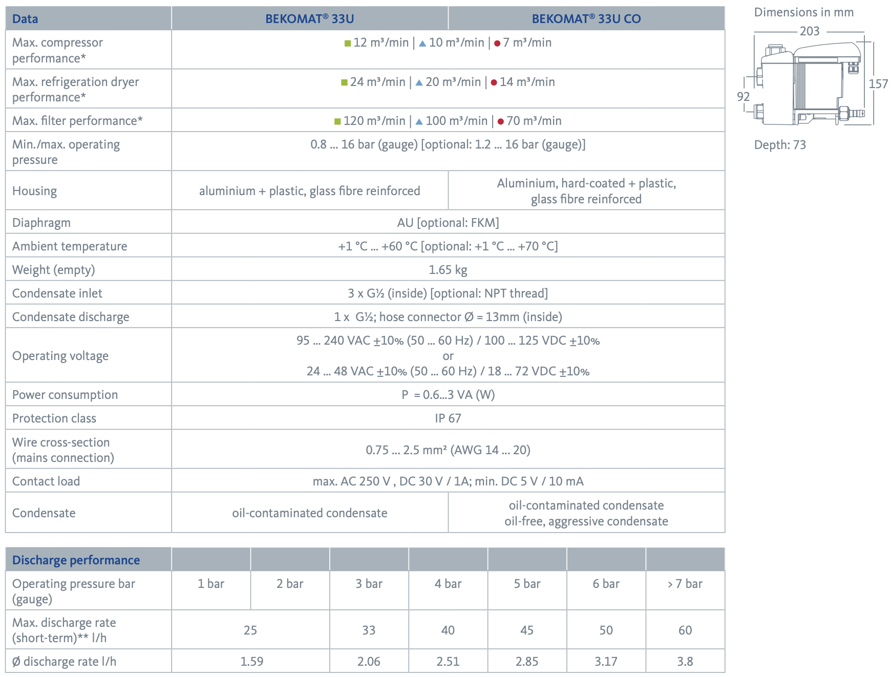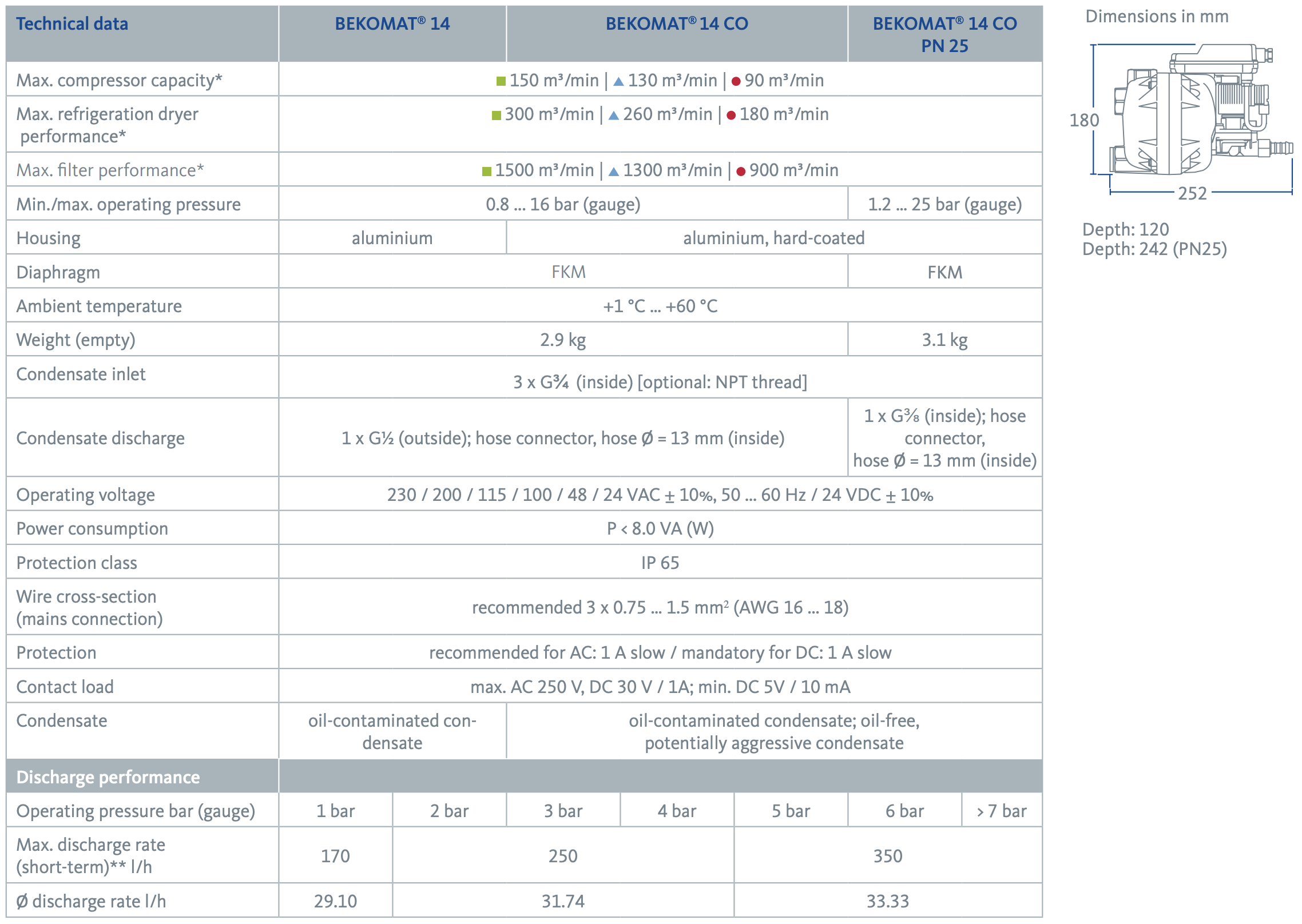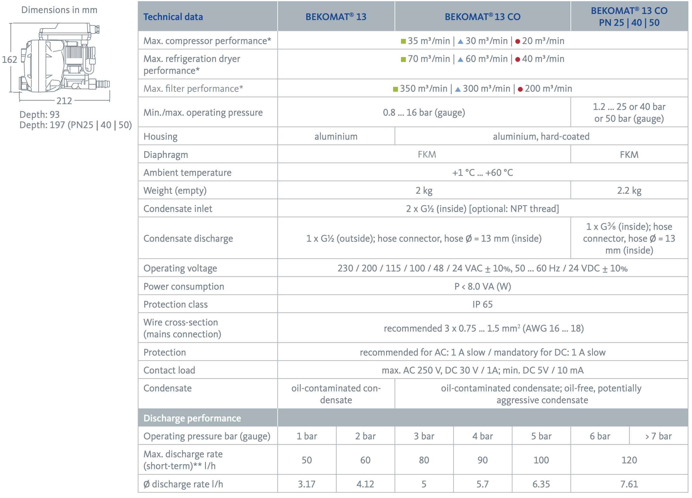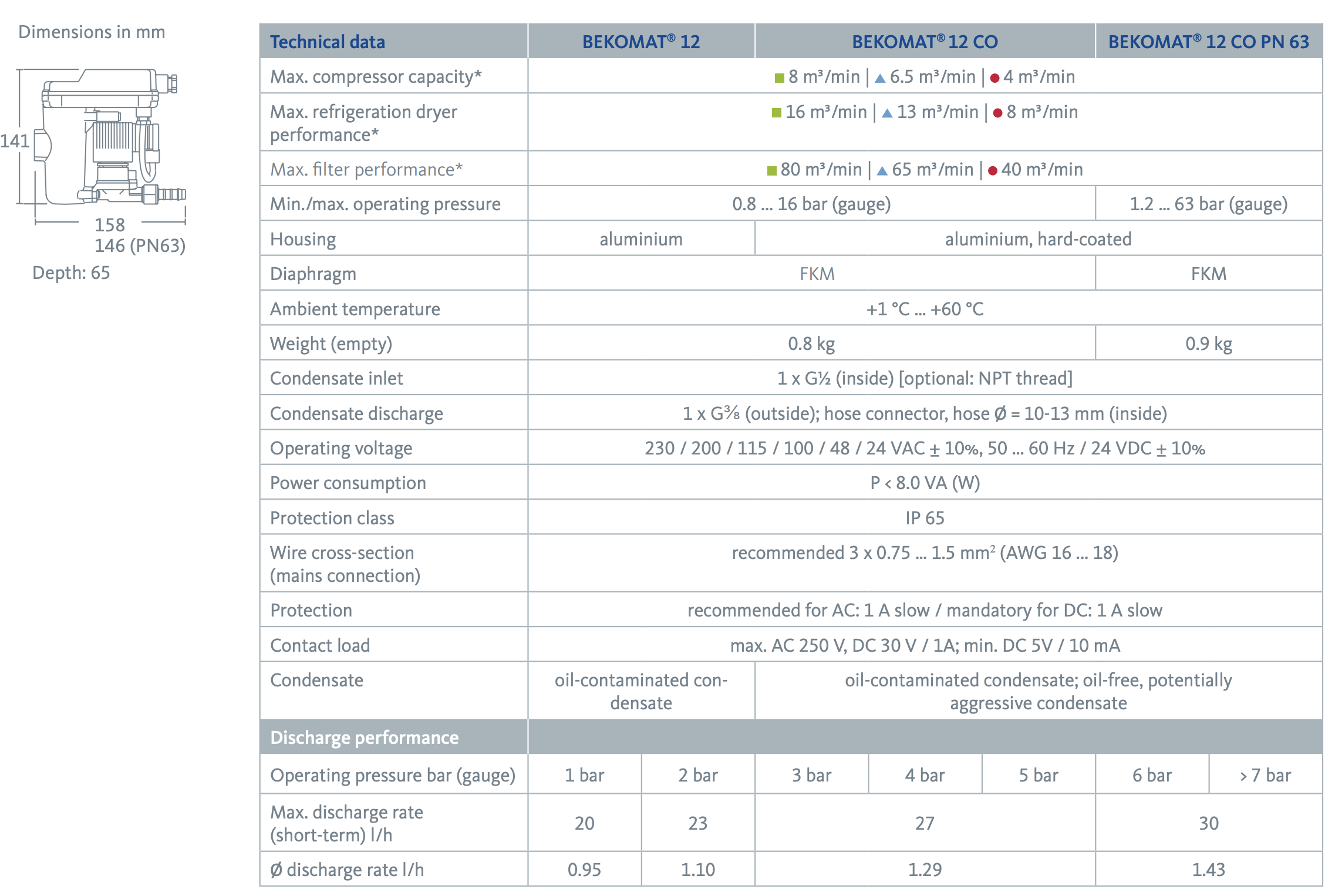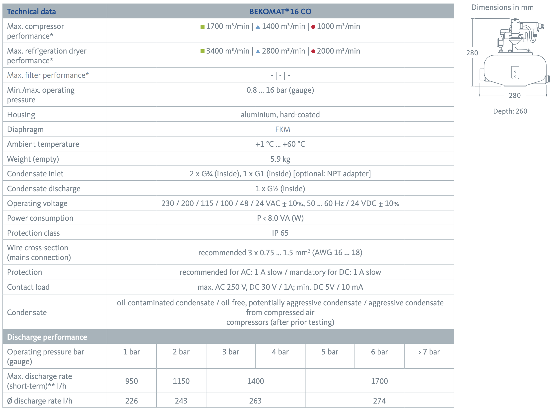 The BEKOMAT series offers not only the right solution for nearly every application but also the most energy-efficient option, including standard units 12, 13, 14, and 16. The integrated capacitive sensor for volume-controlled condensate discharge contributes to energy savings and increases efficiency—just what you expect from BEKOMAT.